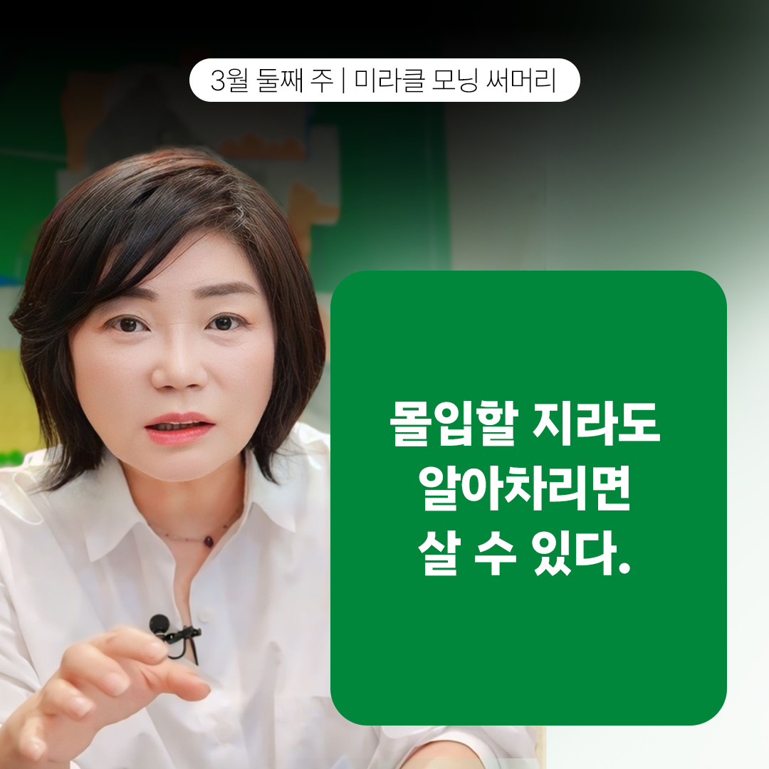3월 11일 <김미경의 미라클 모닝> 정신 번쩍 특강, 몰입할 지라도 알아차리면 살 수 있다